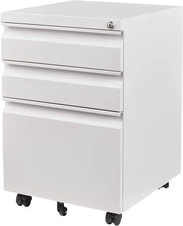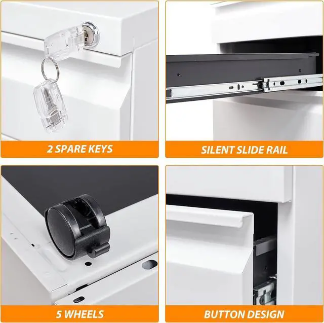 - Mobile File Cabinet: Equipped with 2 lockable casters + 2 360° swivel casters + 1 anti-tilt wheel, you can easily and safely move it. The 360° swivel casters make it easy to turn in any direction, while the lockable casters provide braking and the center support wheels prevent tipping, allowing you to place the cabinet stably under a table or elsewhere.