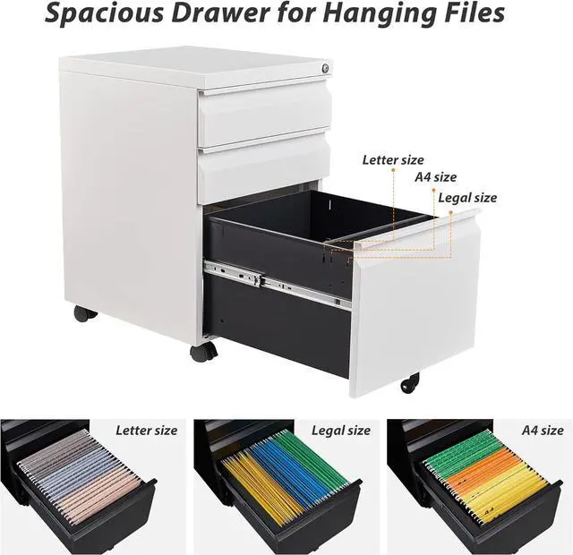 - Abundant Storage Space: This mobile filing cabinet comes with 3 drawers with slide rails. Two drawers at the top to store your bags, phone or other everyday items and papers. Bottom drawer with adjustable shelf, ideal for letter, legal, A4 folders, to meet your different needs.