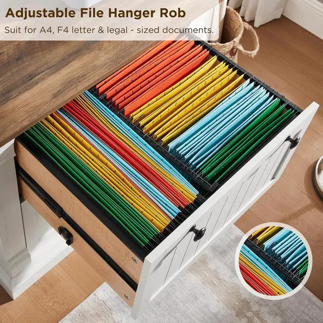 - Multifunctional Use: This spacious filing cabinet is designed to store various document sizes such as A4, letter, and legal with its built-in hanging rods. Its sleek design makes it versatile enough to be used not only in an office but also in living rooms, or other spaces, providing both practical storage and a stylish touch.