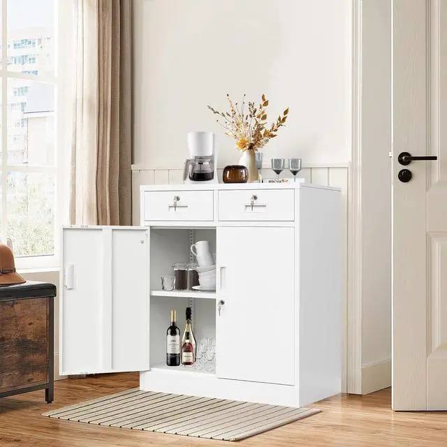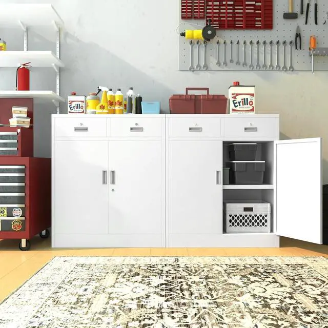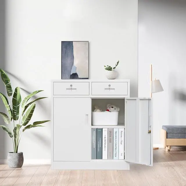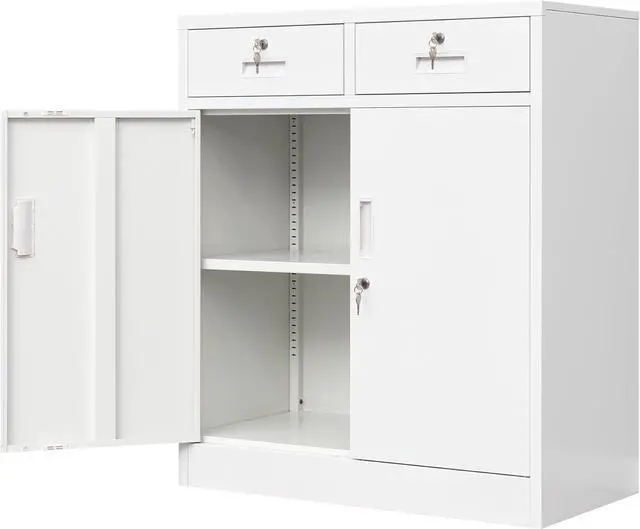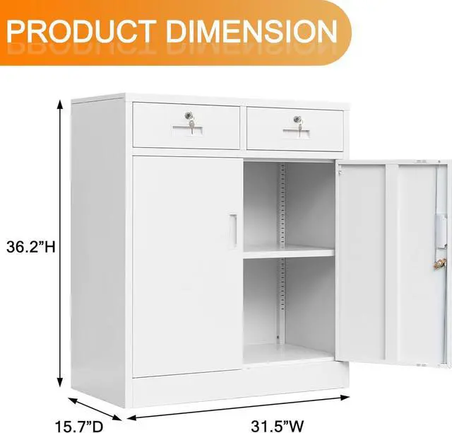 2 DRAWERSThe lockable storage cabinet has 2 drawers, each with a lock. So you can ensure the safety of important documents. Steel cabinet features magnetic double-wall doors, making it tough and quite user-friendly. Its perfect for any place where a storage solution is needed the home, basement, office, garage, warehouse and more. falseEASY