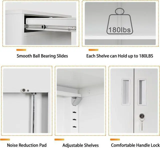 - LOCKING DOORThis storage cabinet comes with three locks and six keys. The metal cabinets content is protected by a three-point locking mechanism, so you dont have to worry about theft or tampering.