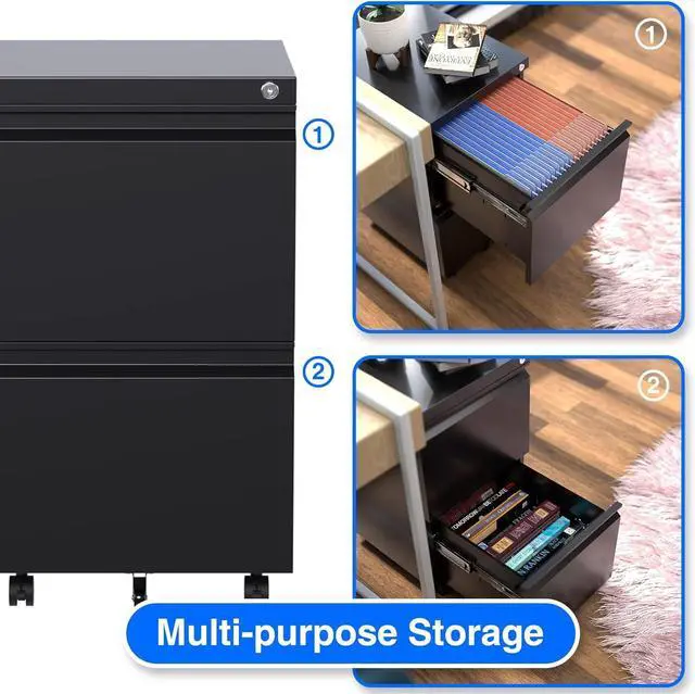 - Security Assurance: This 2 drawer mobile filing cabinet comes with a lock to ensure the safety and security of your important documents and confidential information.