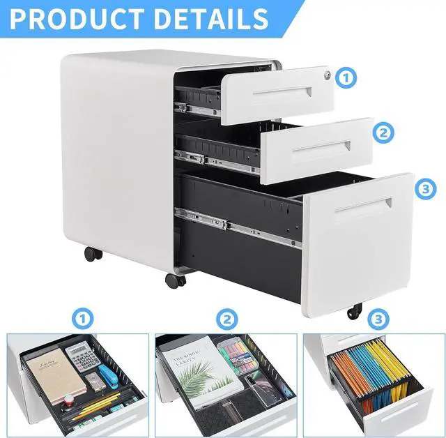 - Sturdy and BeautifulFile cabinet with high-strength cold-rolled steel frame, powder-coated immune to corrosion and rust; Modern delicate appearance and fit height make it can be placed under desk perfect for your home or office us