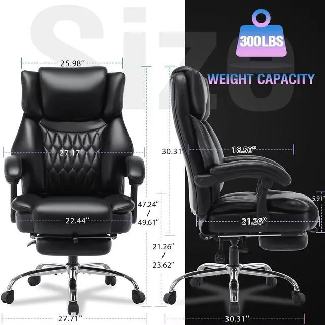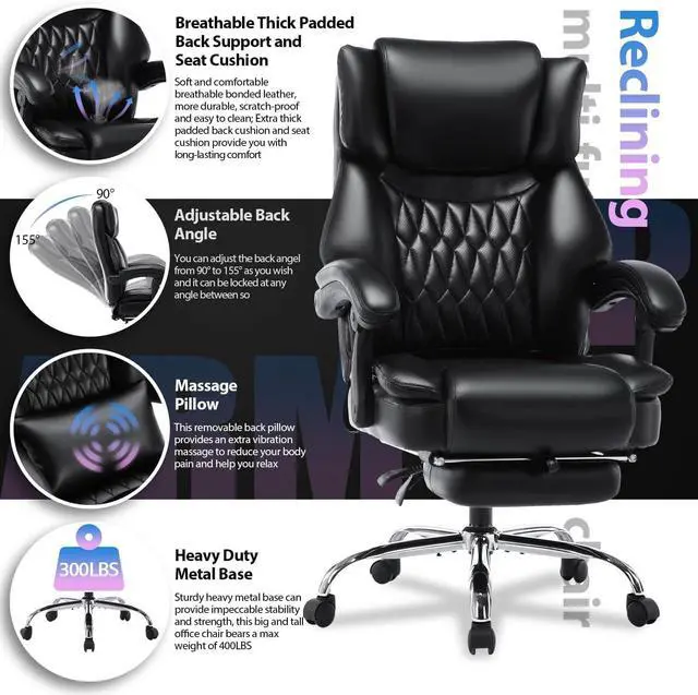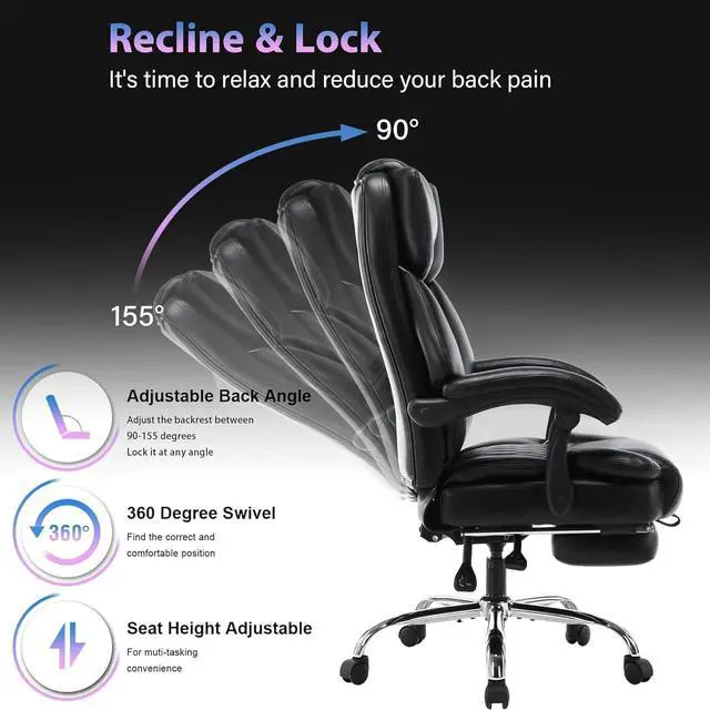 Skip The Tired Back Discomfort & Swollen Foot Painget that just-right feel with our practical back support office chair, featuring a spring pack in the seat cushion for maximum convenience and optimum support. And the best part? This handy office chair also has an adjustable footrest that you can use to rest your legs and prevent any swollen feet discomfort at the end of the dayfalseInvest In A High-Quality Reclining Office Chairare you tired of your cheap desk chair that started peeling off after only a few months? These reclining office chairs are crafted with premium-quality diamond-shaped bonded leather materials that feature air holes for maximum permeability and can withstand the test of time with no issues.