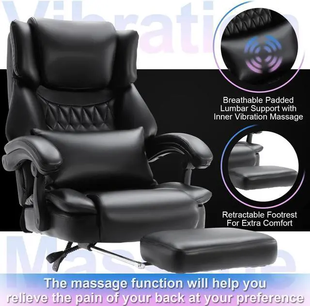 - Upgrade Your Workspace With A High-Performing Massaging Desk Chairstaying seated for long hours means you will have to deal with repetitive stress injuries and intense back pain at some point. This elegant massage chair for your office features an extra vibration massage lumbar cushion to reduce your body pain and help you relax while tackling the day's to-do list.