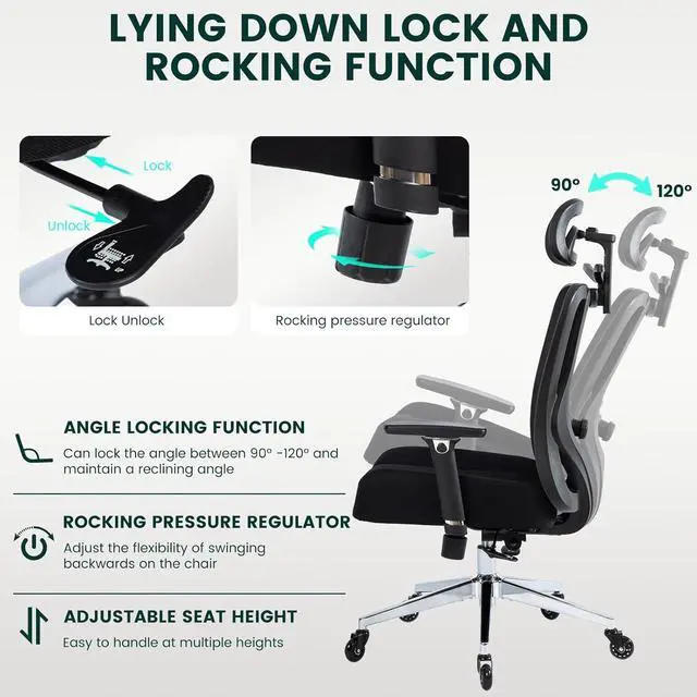 - Ergonomic DesignThe S-shaped backrest design offers superior spine support, promoting better posture and reducing strain during extended use. The chair's reclining mechanism provides a range of 90°-135°, with three lockable angles for added versatility, letting you switch effortlessly between focused work and relaxation.