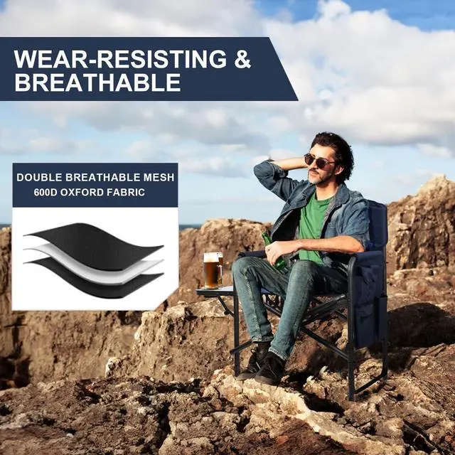 600D OXFORD FABRICThe heavy duty camp chair is made of 600D Oxford fabric, which provides a comfortable seating experience while maintaining durability and can be reused in outdoor conditions. The breathable mesh fabric enhances the comfort and breathability of the seats, ensuring a comfortable and refreshing camping experience.