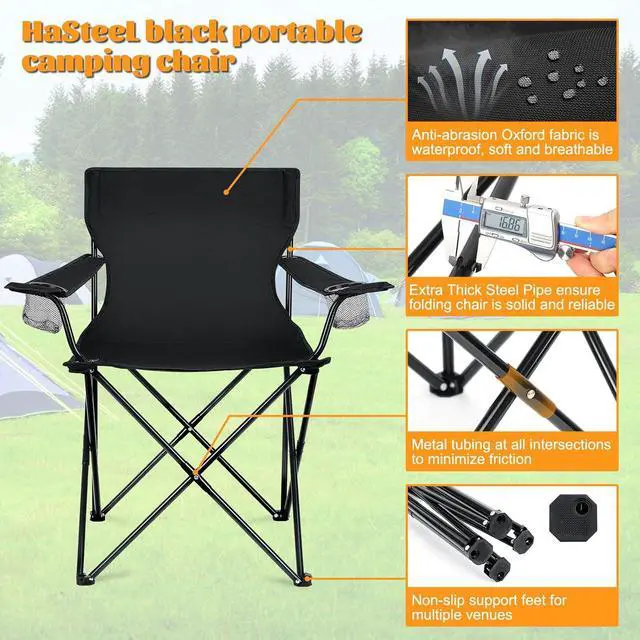 PORTABLE & FUNCTIONAL: Each folding chair weights only 6lbs for easy moving and carrying, Folding and opening in a breeze and no assembly required, Equipped with black storage bags for all outdoor activities, 4 pack camp chairs can meet your needs for family members, party and replacement, You can use it with your family, friends and pets at weekend