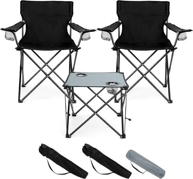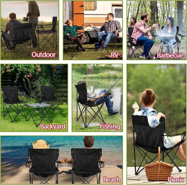Superexcellent Combination: This camp chair set contains 2 portable outdoor chairs and a folding table, Suitable for a couple or friends to spend lovely vacation together, The table can keep your items off the ground, avoids fatigue from reduplicative stooping, Expand extra area for storing other small items