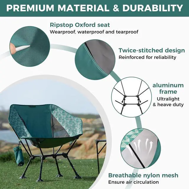 Built to Last Stable & Durable Frame: Designed with a reinforced square frame and 7075 aerospace-grade aluminum, our chair is lightweight yet incredibly strong, offering superior durability over time. The anti-sinking feet provide stable seating even on tricky surfaces, beach, campsite, or in the mountains