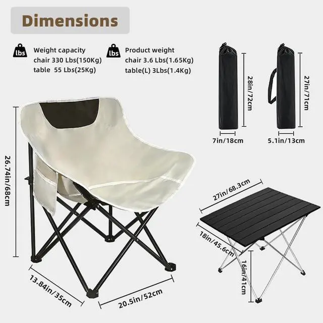 Perfect for Any Outdoor SettingWhether you're camping, picnicking, fishing, sports event, or enjoying a day at the beach, our Camping Folding Table and Chair Set is a versatile option that suits any outdoor setting. Embrace the beauty of nature while enjoying the convenience and comfort of this essential camping gear.