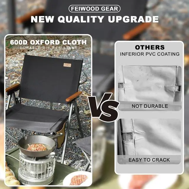 Hight-Quality Camping ChairOur camping chair features a reinforced aluminum-iron alloy frame and 600D Oxford fabric, this chair is not only waterproof and breathable but also easy to clean. Upgrade your outdoor experience with our premium camping chair.