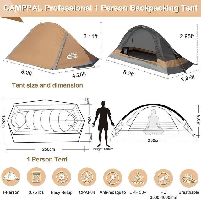 [Extended Length - 8.2 ft]: This single person tent is long enough to enable the taller person to sleep in the tent comfortably; The longer tent also provides with extra space for the personal belongings like luggage, backpack, clothes, shoes, etc.