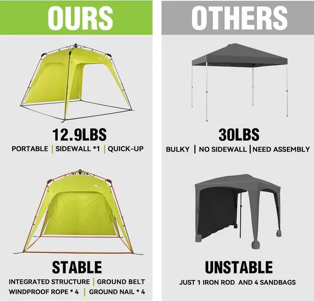 WHAT YOU GET - QUICK UP beach canopy, a carry bag, steel pegs, guy ropes, one detachable flap; If you have any questions, welcome to contact our amazing customer service.