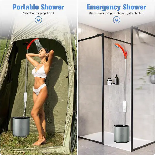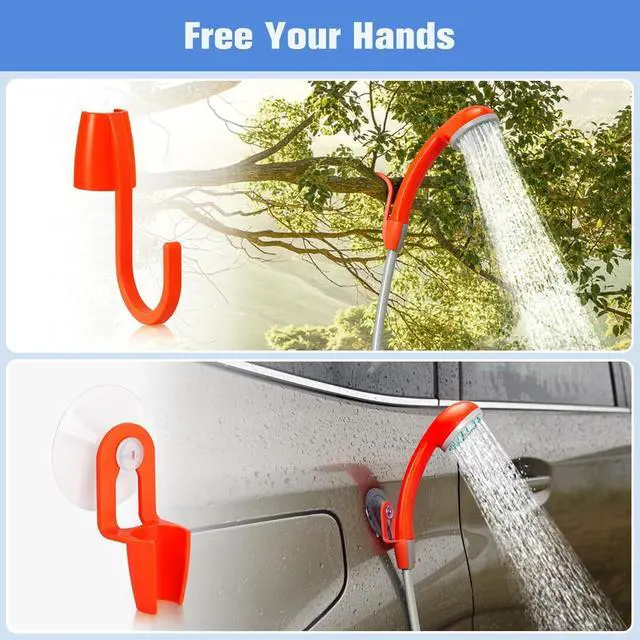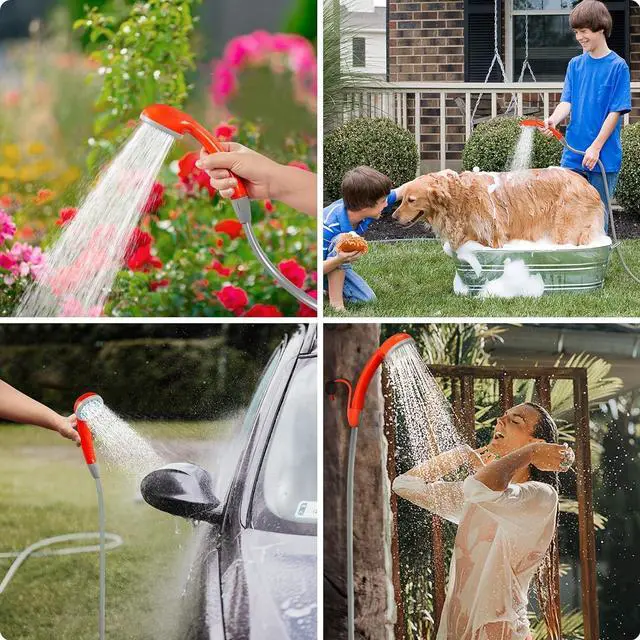 Portable Camping Shower: Suitable for INDOOR/OUTDOOR shower, Weight only 25.2 ounces, easy to carry and store in luggage, backpack or car trunk. Perfect for outdoors camping, hiking, kid bathing, pet cleaning, car washing, plant watering, windows and backyard cleaning.