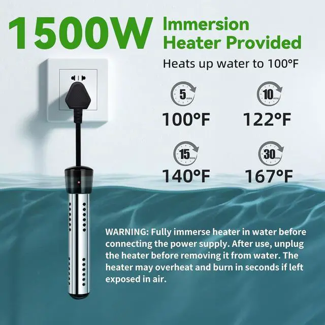 Always ensure that the heater is fully immersed in water before plugging it in. After usage, unplug the heater before removing it from water. Exposure to air during operations will cause overheating and burning which is dangerous.