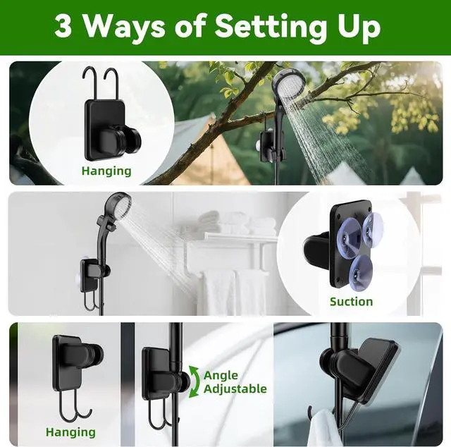 Lightweight & Portable: portable camping shower is designed to be compact and convenient to carry. The entire kit weighs <2lb and contains: 1x water pump, 1x shower head, 1x sprayer, 1x 6.7ft hose, 1x shower head mount with hook and suction cup, 1x USB Type-C charging cable and 1x mesh bag for you to store and organize all the components. It is ideal for indoor / outdoor showers, camping, hiking, beach trips, BBQ and more