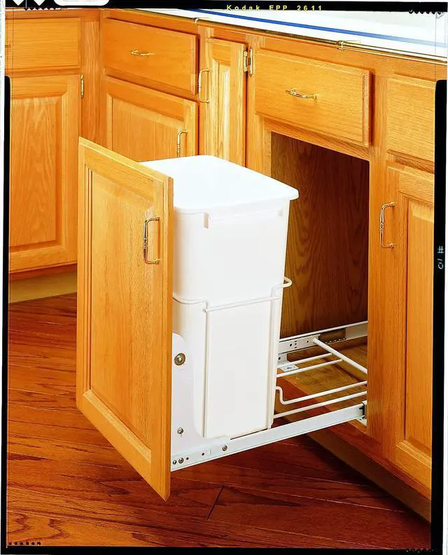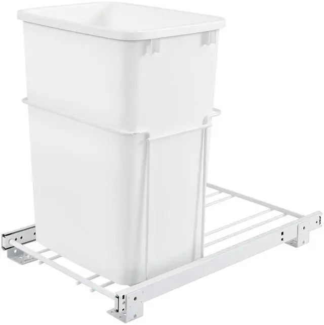 INCLUDES: 1 white 35-quart waste container, white frame, and mounting hardware; Dimensions (W x D x