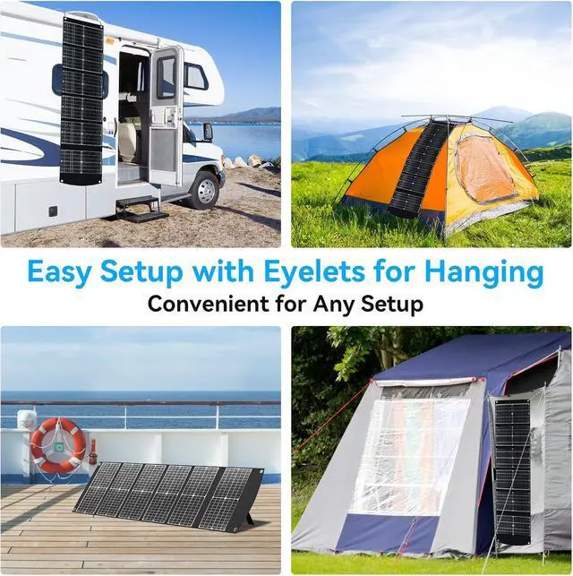 High Conversion Efficiency & Stable Design: With 23.5 % conversion efficiency, 100W solar charger maximize sunlight utilization for fast charging. Equipped with 4 kickstands, it allows for quick and easy setup while ensuring exceptional stability for worry-free charging in any condition