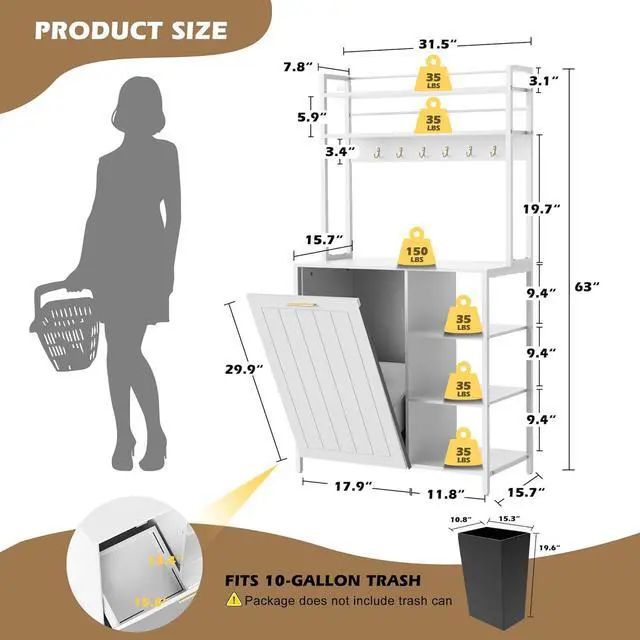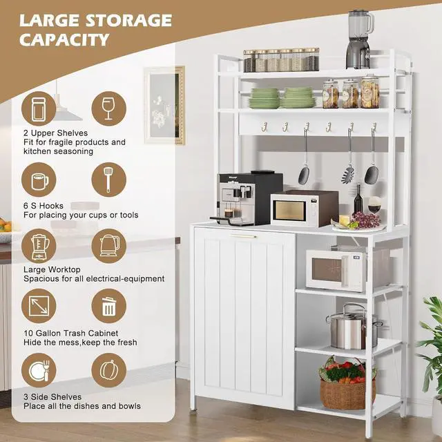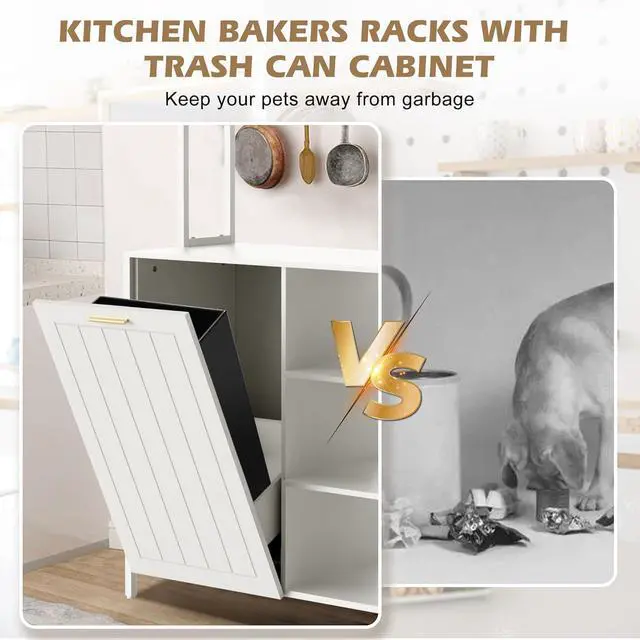 Solid & Durable Construction: Crafted from robust particleboard and a durable metal frame, this Farmhouse kitchen storage stand is waterproof and scratch-resistant. The non-slip cushioned feet at the bottom protect the floor from scratches
