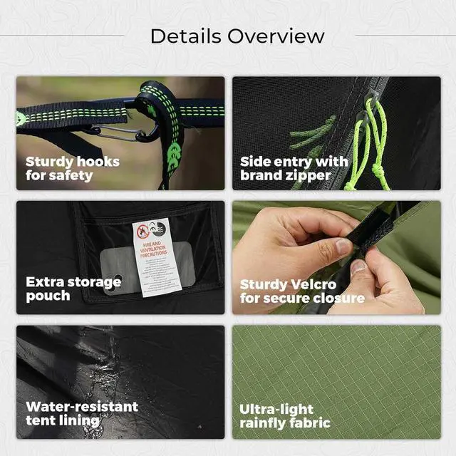 Easy to Set Up - 2 x foldable aluminum support pole for supporting mosquito nets, 2 x carabiners, 2 x 110" hammock tree straps with 10 loops for length adjustment, 1 x storage bag for storage. Compared to a hammock that uses complicated ropes to support mosquito nets, you have everything you need for a quick and easy setup, increase your efficiency and save your money.
