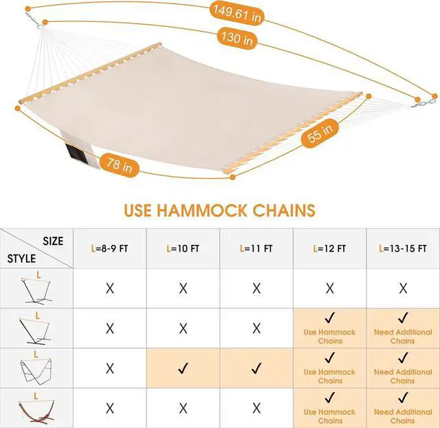 WHATS IN THE PACKAGE: 1 hammock, 2 chains and 2 hooks in the package (Hammock stand not included)
