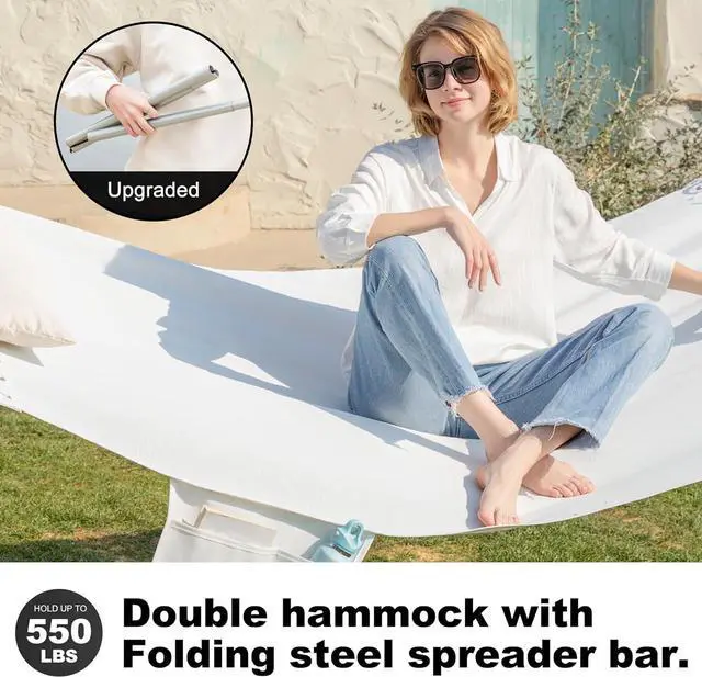 PORTABLE CAMPING ALSO & EASY TO USE: You can hang it from a 12-14f t hammock stand (not included) or between trees by adjusting the position of the chain. Portable carrying bag & tree Straps & carabiners & forOutside, indoor, Patio, Backyard, Balcony and outdoor.