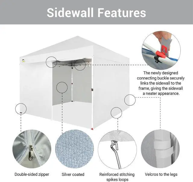 [STO'N Go Bag]: Transporting and storing camping gear has never been easier than with the newly designed patented STO'N Go Bag. It comes equipped with a specialized pocket designed to hold 8 stakes, 4 guy ropes, and 4 removable wall panels. With its compact size, it can fit comfortably in most vehicles, so you can take your canopy with you wherever you go.