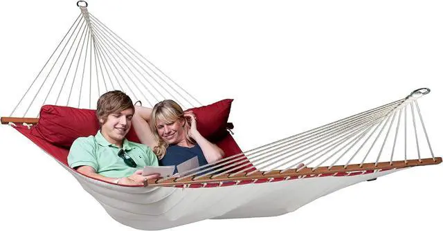 Supreme relaxation The extra-wide hammock bed provides ample space for up to two people, allowing them to spread out comfortably and relax face to face. Alabamas padded lying surface adds extra comfort and insulation against cool air. Perfect weightlessness is achieved by the 36 suspension cords, ensuring optimal weight distribution and enhancing the hammock's durability.