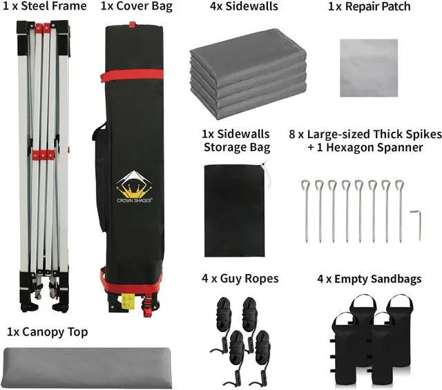[STO'N Go Bag]: Transporting and storing camping gear has never been easier than with the newly designed patented STO'N Go Bag. It comes equipped with a specialized pocket designed to hold 8 stakes, 4 guy ropes, and 4 removable wall panels. With its compact size, it can fit comfortably in most vehicles, so you can take your canopy with you wherever you go.