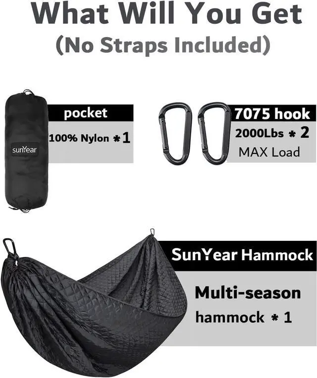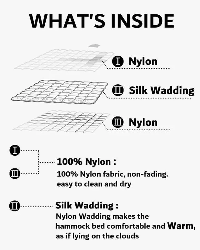 LONG-LASTING DURABILITY - This lightweight camping hammock has been designed for long-term use. Two layer quilted nylon fabric and comfy poly fibre filling maintain a durable and heavy duty appeal. It's also machine washable!