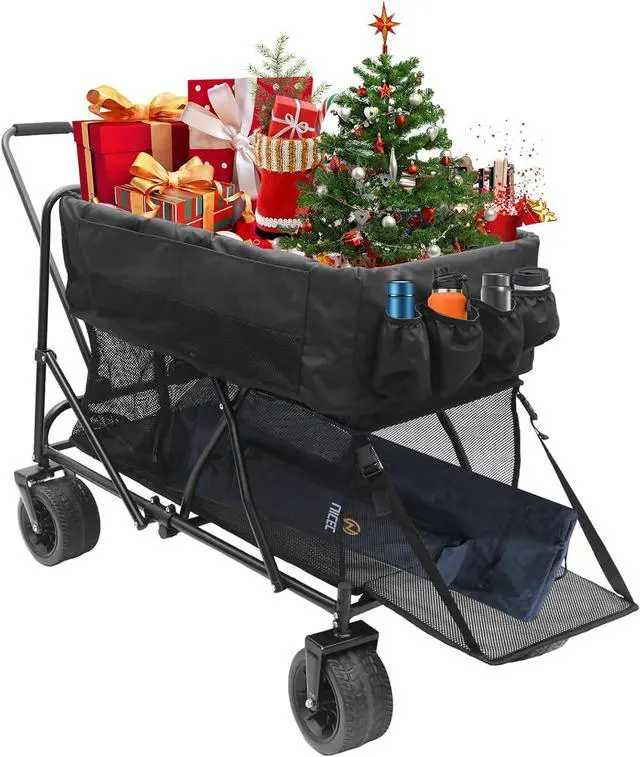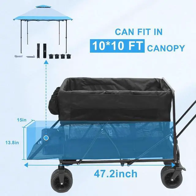 Collapsible & Space-Saving Design: Despite its generous carrying capacity, this wagon folds down to a compact size of 35.4" x 19.7" for convenient storage and transport. Whether you're going to a campsite, park, or sports field, the foldable design makes portability effortless.