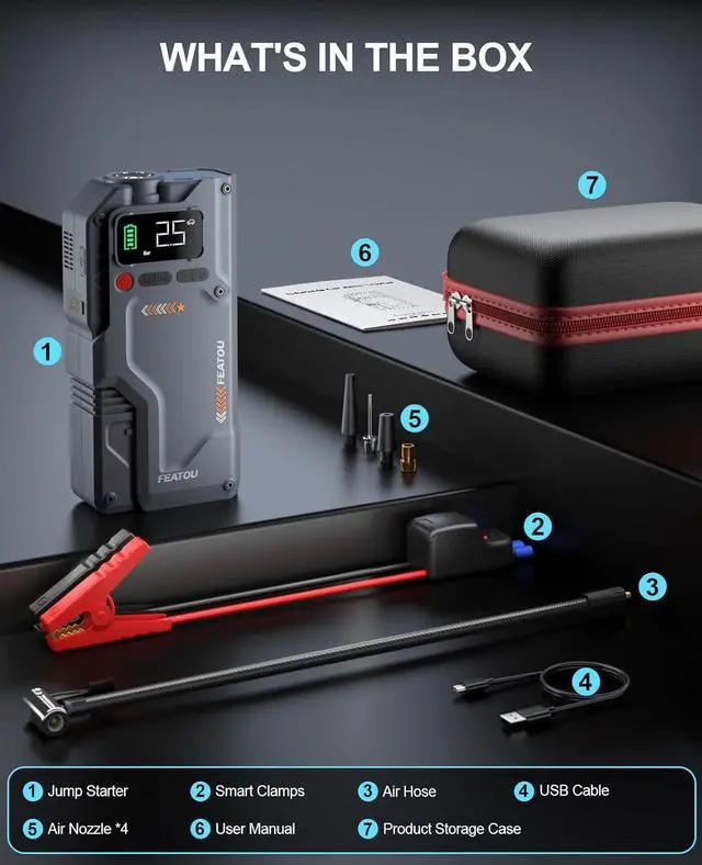 Convenient And Portable: The jump box comes with a premium case for easy storage and portability. Whether it is used at home or traveling, it is more convenient to organize and carry