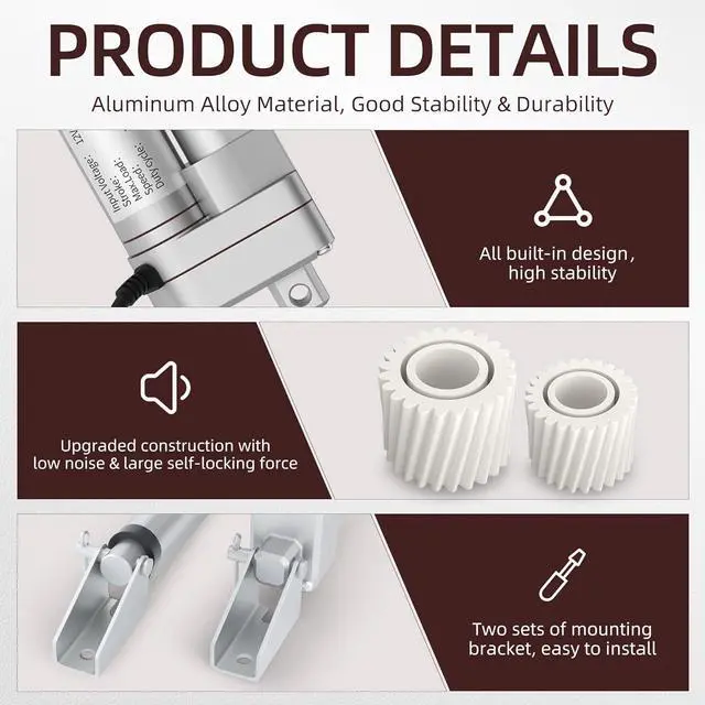 Wide Application: The electric actuator could perform tasks much efficiently and safely compared to manual operation. All in all, this actuator 12V could widely applied to window opener, electric sofa, electric wheelchair, electric nursing bed, automatic door opener, industrial electric lifting system, etc
