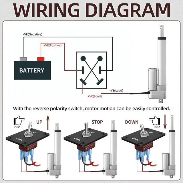With Controller: The package of this electric actuator 12V will also includes a polarity reversing switch to meet special need. In addition, the switch will also be equiped with all necessary parts for use, such as mounting panel to adapt different hole size, waterproof cap to make it suitable for outdoor use, terminal connectors to make it convenient for connecting