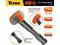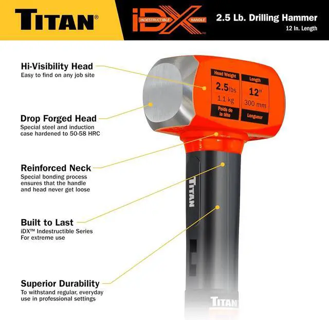 These hammers are extremely durable with virtually indestructible handles. They feature an Induction case hardened forged 50-58 HRC steel head, with 4 spring steel bars running through the handle interlocking with steel locking plates ensuring that the head never becomes dislodged. The ergonomic rubber grip handle absorbs vibration and reduces fatigue. For use in construction, demolition, rebar work, and multiple other applications.