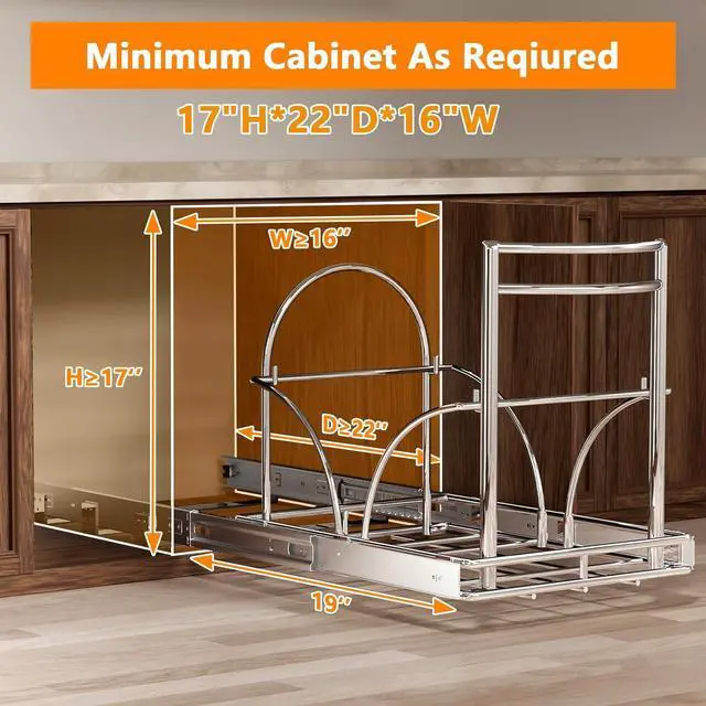Essential for Exquisite House DecorationCleanliness is our eternal pursuit and storage tools are our assistants. Pull out cabinet organizer 22 inch deep can help you to place pots and pans, seasoning jars, food jars, cleaning supplies, spice racks, and other items, significantly saving your storage space.