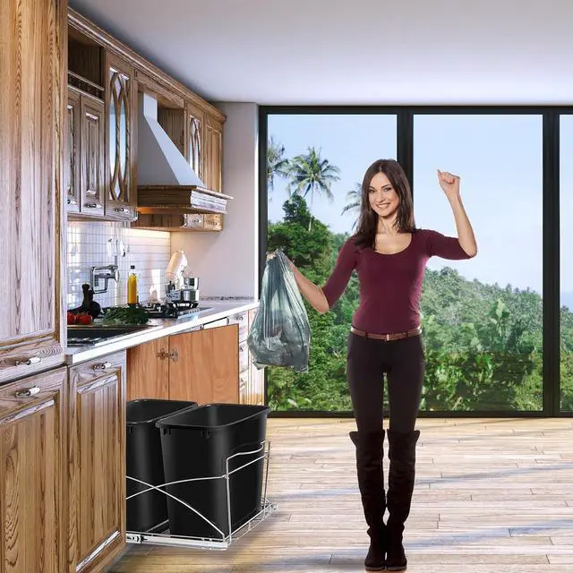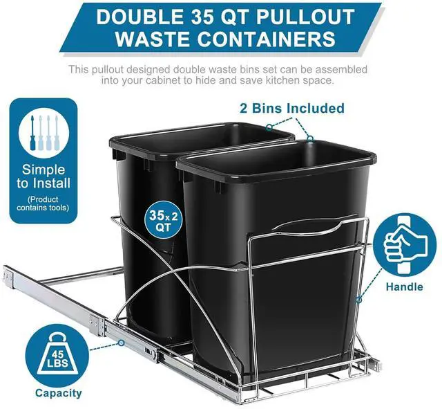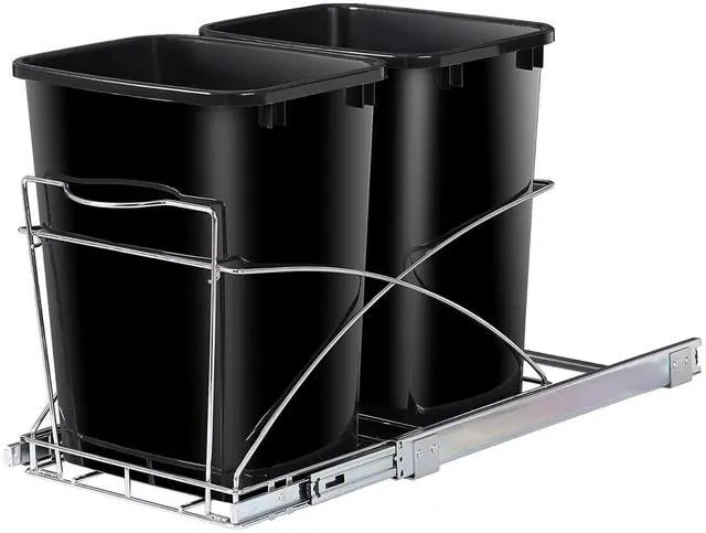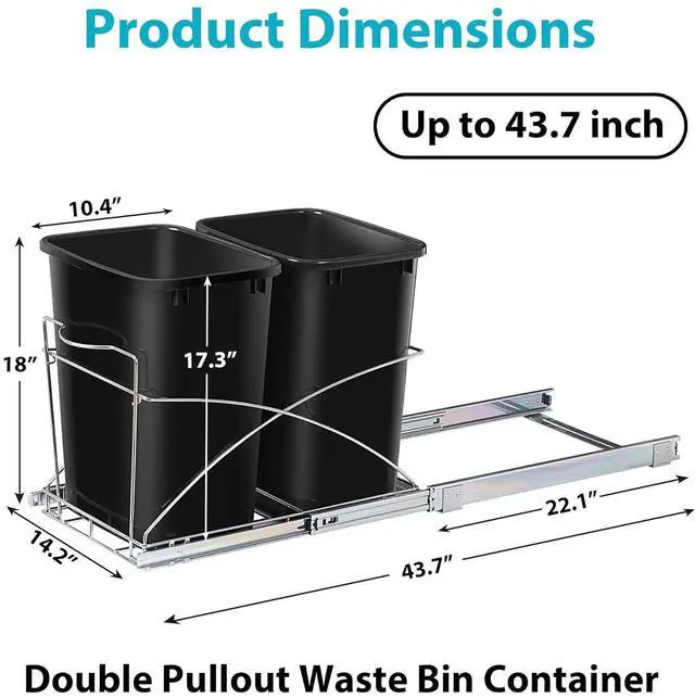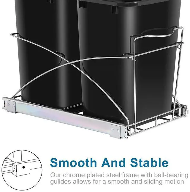 Smooth & Stable Pull Out FrameFeatured chrome plated frame with ball bearing gliders provides a smooth yet stable sliding motion when you pull out or push in the trash bin, easy and convenient.