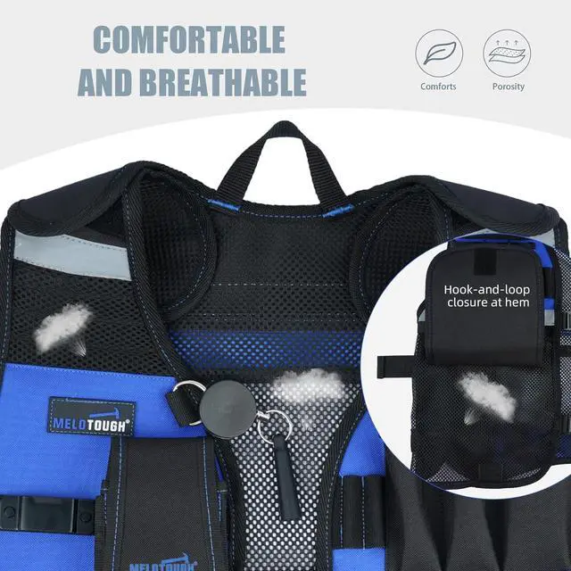 ADJUSTABLE TOOL VEST FOR MEN: Adjustable hook-and-loop shoulder straps, electrician tools vest with adjustable buckles on both sides, convenient for you to adjust according to your personal needs to ensure the comfort of wearing.