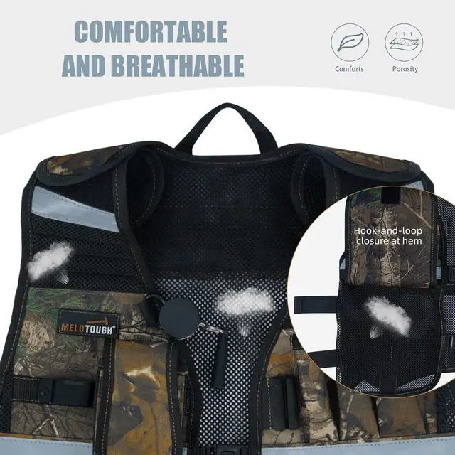REFLECTIVE STRIP DESIGN: Reflective strips on safety tool vest shoulders, chest and back can improve the safety of night work.