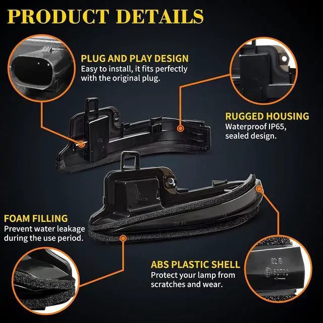 [PACKAGE & WARRANTY]: 2 Pack LED rear view mirror turn signal lights (left + right) with Dot/Sae Approved, Provide 12 Month-Warranty. If The Received Product Has Inappropriate Or Other Problems, You Can Contact Us Directly, We Will Provide You With High-Quality Service And Solve The Problem For You!
