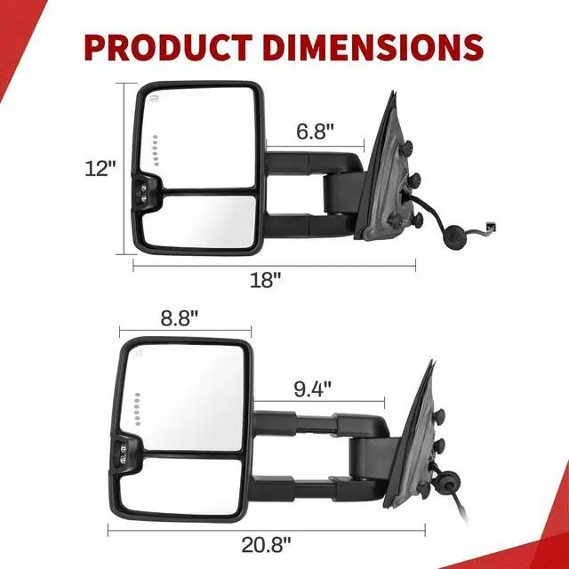 Plug and Play Installation Enjoy hassle-free installation by connecting the trailer towing mirror plugs to the corresponding power cord, no modifications or drilling needed