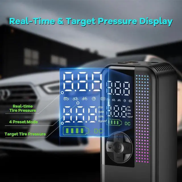 Done: Our portable tire inflator has 4 smart preset modes for multi-purpose use. One-touch presets for Car, Bike, Motorcycle, and Balls. Easily switch modes and let the inflator stop automatically at your desired pressure