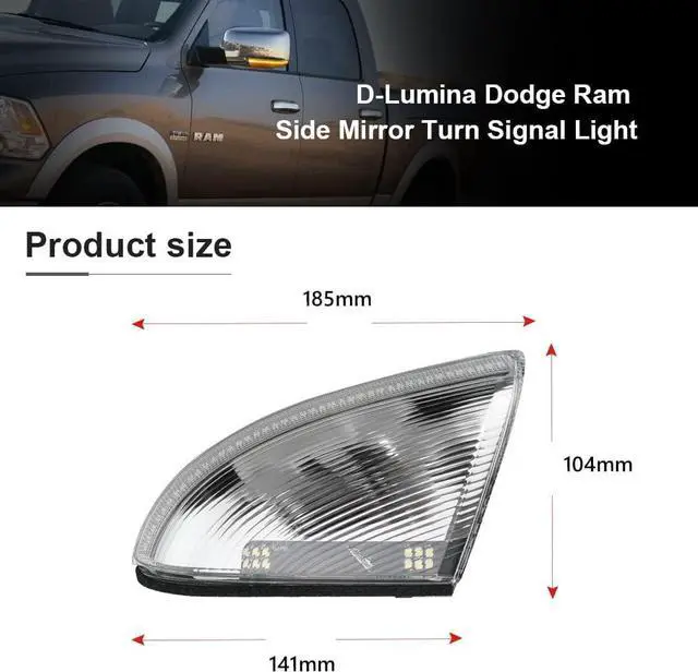 [Package & Warranty]: 2pcs dodge ram led mirror turn signal light. Please Check the compatibility and part number before purchasing. Lifetime friendly customer service for you. If you have any question, you could contact us anytime for help.