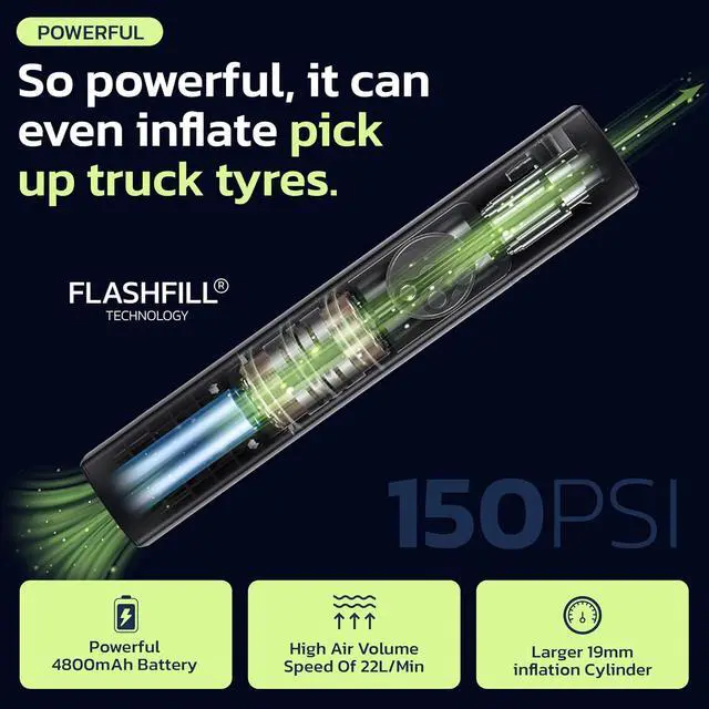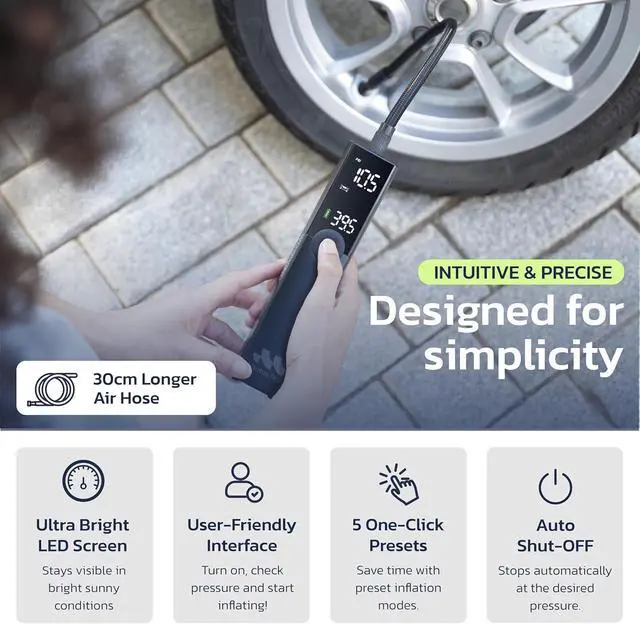 EMERGENCY LED LIGHT & SAFETY FEATURES The built-in LED flashlight helps with nighttime tire inflation and the SOS emergency flashing mode enhances roadside safety. Keep it in your car, backpack, or garage for peace of mind.
