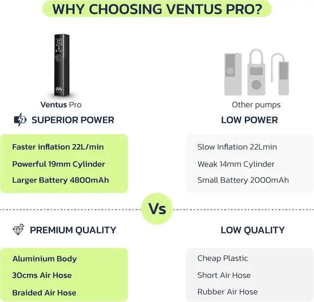 Skip The Gas Station, Get Back On The Road Quick With Ventus Pro, inflate your tires quickly anywhereno detours, no gas station stops.