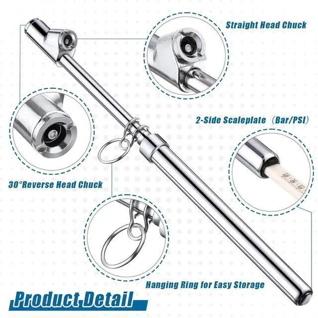 Heavy Duty Structure: zinc alloy chuck with solid brass body and aluminum slide make the tire pressure gauge reliable for long time using; There is a hanging ring for easy storage; It doesn't need battery, suitable for different severe environment