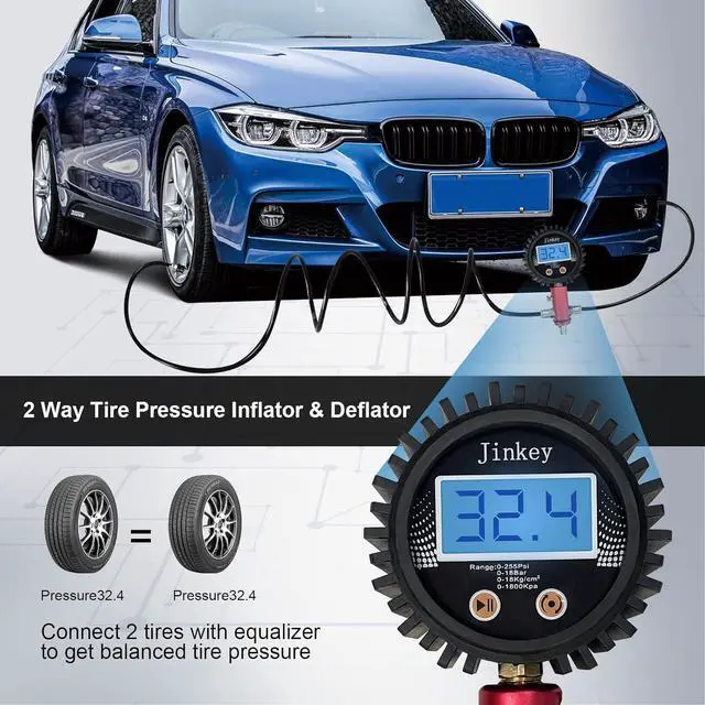 Quick Coupler Adapter: 's upgraded 2 tire pressure equalizer allows you to not only check and equalize tire pressure but also inflate and deflate up to 2 tires simultaneously to the same pressure; With the included quick coupler adapter, you can easily connect an air compressor to the tool, allowing you to inflate your tires without the need for a separate air inflator; This added convenience makes maintaining proper tire pressure a breeze