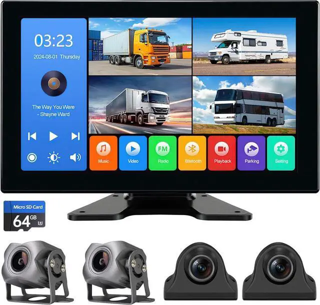 2025 NEW 4-Channel 1080P Camera Dash Cam with 10.2 '' Monitor for