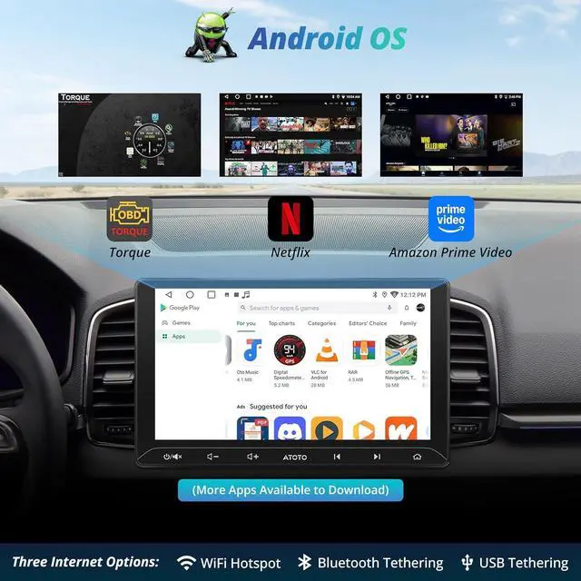 Enhanced Audio & Radio Experience: 10 inch Android car stereo built-in DSP with 9 EQ presets and 24 bands. Preamplifier offers peak 4x45W and continuous 4x24RMS power. Supports F-M/AM with RBDS, S-XMproviding real-time info, traffic updates, and better user interaction